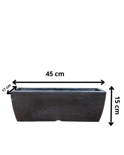 A Jardineira Grafiato 45 Preta é um vaso de polietileno resistente, com acabamento texturizado que imita grafiato. Mede 45 cm