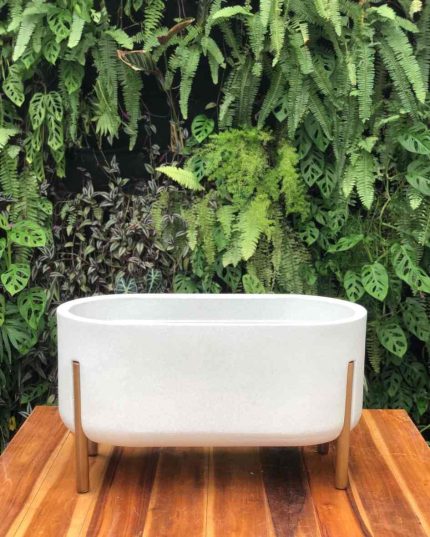 A Jardineira Safira 100 na cor Areia da Nutriplan é uma peça decorativa de grande porte, ideal para ambientes internos e externos. Seu design robusto e acabamento texturizado conferem um toque de elegância e sofisticação ao espaço.