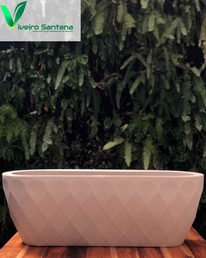 A Jardineira Safira 100 na cor Areia da Nutriplan é uma peça decorativa de grande porte, ideal para ambientes internos e externos. Seu design robusto e acabamento texturizado conferem um toque de elegância e sofisticação ao espaço.