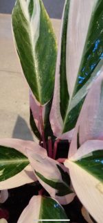 – *Folhagem: As folhas da *Maranta triostar são grandes, ovais e possuem um padrão marcante. Elas apresentam uma combinação de verde escuro, verde claro e tons de rosa ou creme, criando um visual muito atraente.