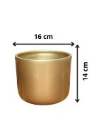 é um vaso decorativo de cerâmica, ideal para orquídeas e outras plantas de pequeno porte. Com design elegante e acabamento dourado, adiciona sofisticação a diversos ambientes.