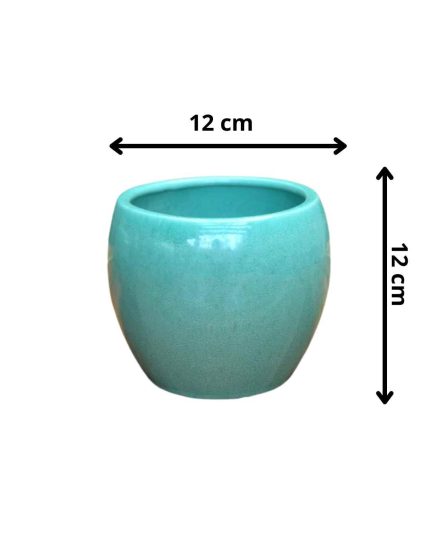 Vaso decorativo de cerâmica esmaltada, com acabamento brilhante nas cores azul e preto. Ideal para uso interno ou externo, perfeito para plantas ornamentais ou como peça decorativa.
