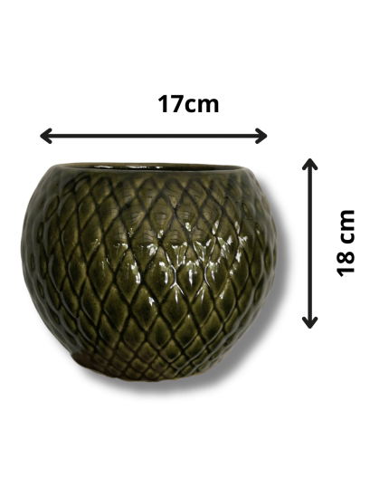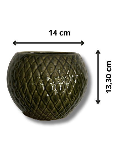 O Vaso Botani Bojo Esmaltado Verde Oliva P  combina sofisticação e funcionalidade, sendo perfeito para composições elegantes em qualquer ambiente. Fabricado em cerâmica de alta qualidade, possui um acabamento esmaltado brilhante, que realça sua tonalidade verde oliva, trazendo um toque natural e sofisticado à decoração. Seu formato bojo confere um design clássico e robusto, ideal para plantas ornamentais.