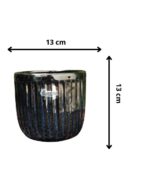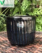 Vaso decorativo da Linha Violeta, com acabamento esmaltado mesclando tons profundos de azul e preto. O modelo PT 12 é compacto e sofisticado, ideal para violetas, suculentas ou pequenas folhagens. Une elegância e praticidade para ambientes internos ou áreas cobertas.