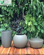 O Vaso Paisag Oval na cor Verde Militar é uma opção robusta e elegante para compor ambientes internos e externos